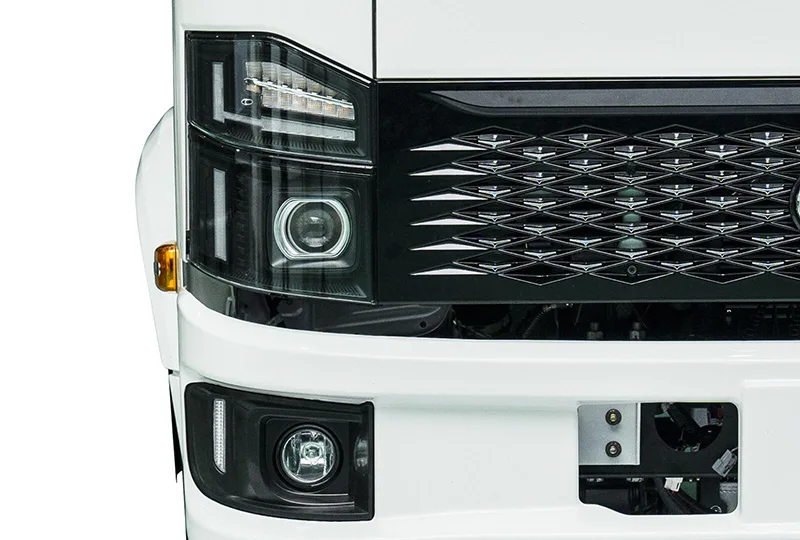 Với cấu trúc hình thoi liên kết với nhau tạo sự chuyển động khi tương tác với ánh sáng. Họa tiết là điểm nhận diện chính được vát cạnh mạnh mẽ, cách điệu từ chữ “T” của thương hiệu THACO TRUCK.
