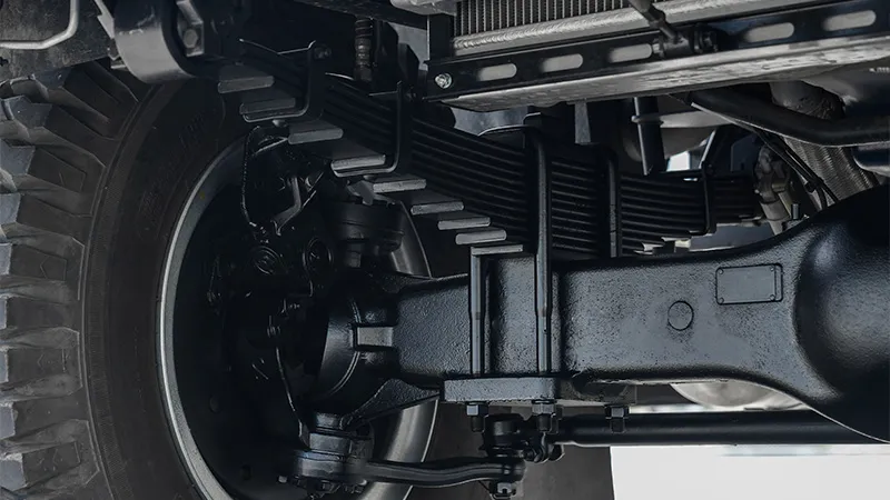 Hệ thống treo trước sử dụng nhíp lá (10 lá) kết hợp giảm chấn thủy lực, giúp dập tắt dao động nhanh, vận hành êm dịu