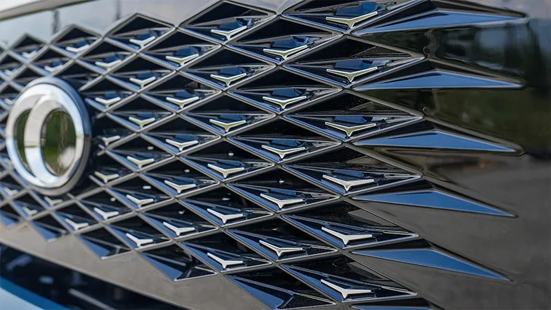 Mặt ga-lăng thiết kế hiện đại với cấu trúc hình thoi nổi bật. |